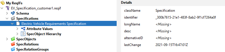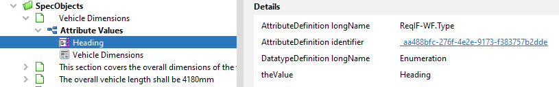 Most ReqIF objects that are represented in nodes displayed in the Tree Window are Identifiables that contain the following properties: