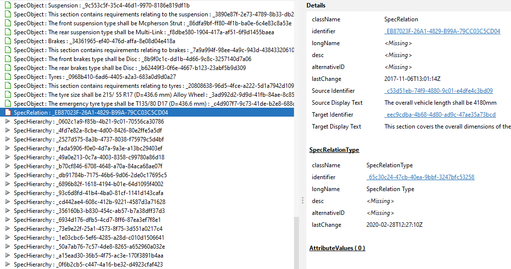 - The properties of the SpecObjectType that is associated with the SpecObject. You can click on the identifier of the SpecObjectType to navigate to the SpecObjectType node that is located in the SpecObjectTypes folder.