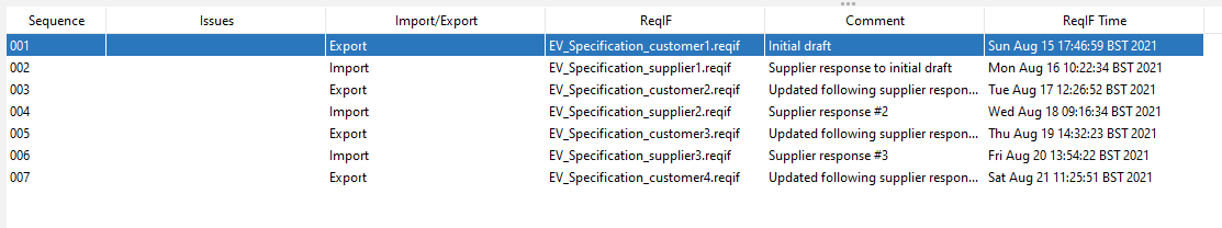 REQIFtoolkit enables you to record each ReqIF in an Exchange Process Timeline and visualize this in a number of different ways.